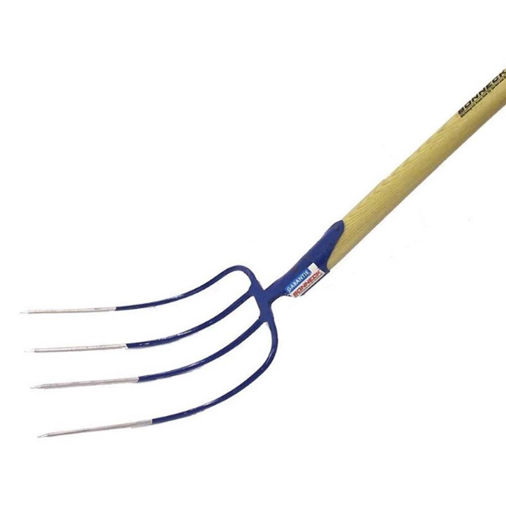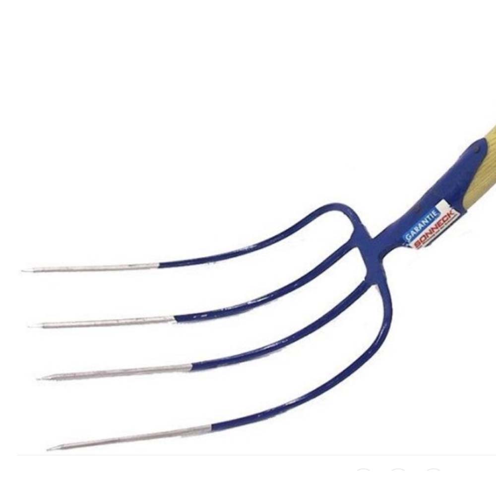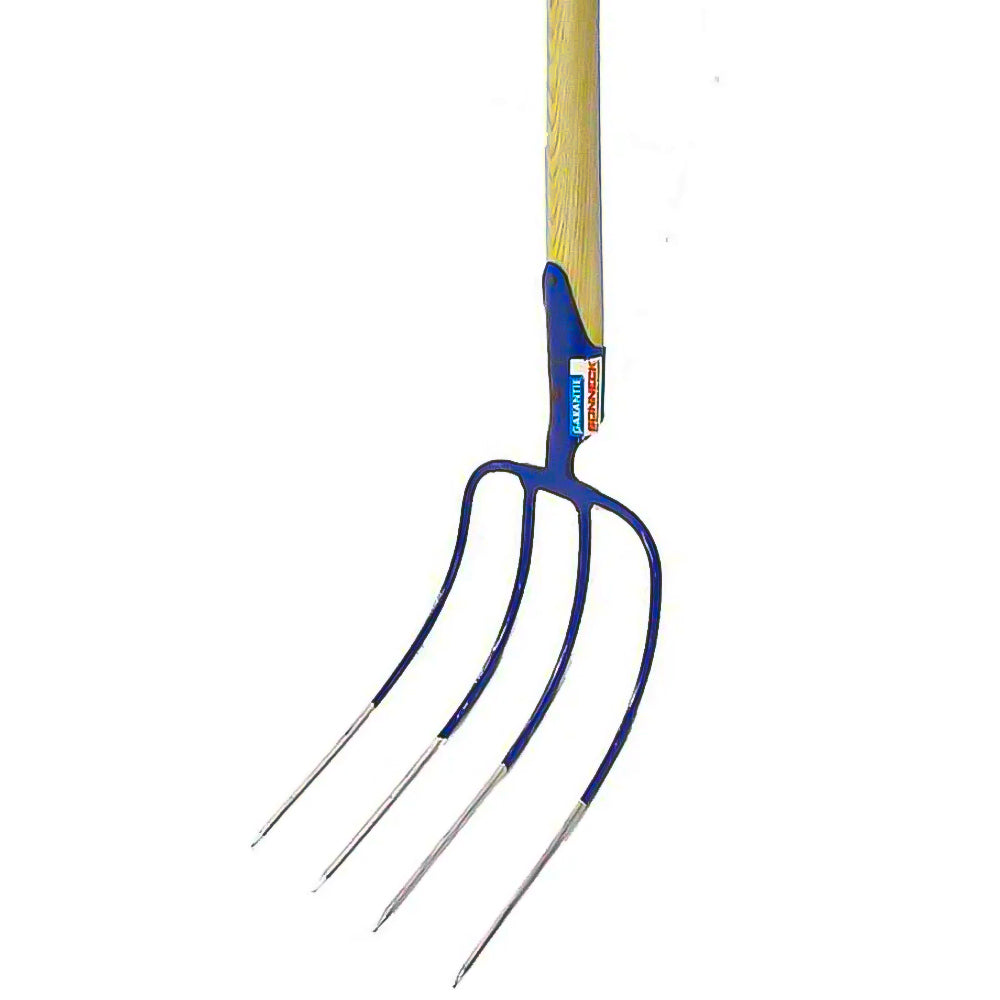 - Robust 4-pronged manure fork, handle included