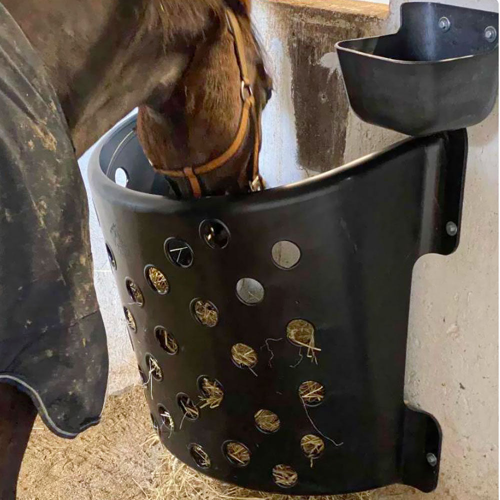 Equipped with side holes and slots, the dispenser ensures proper ventilation of the hay. These openings also drain dust, germs, and impurities, improving hygiene and preventing feed residue buildup.