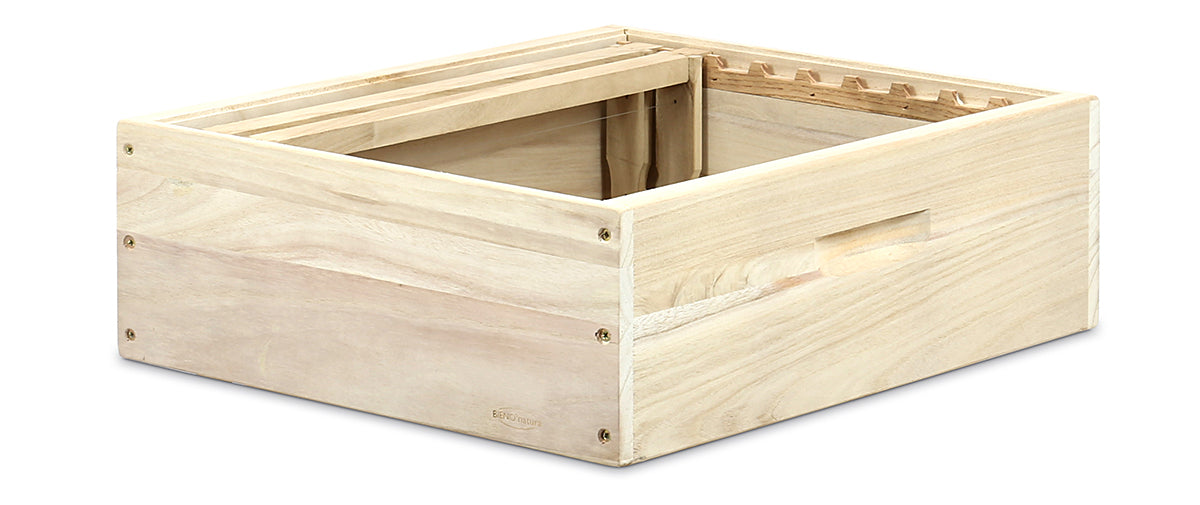 Perfectly designed for 9 Dadant Blatt frames (470 x 159mm), this Garda honey super box comes with distance bars for optimal spacing. The box measures 43 x 50cm externally with a height of 17 cm, making it ideal for efficient honey storage and extraction. Durable and practical, it ensures a comfortable fit for your hive management needs.