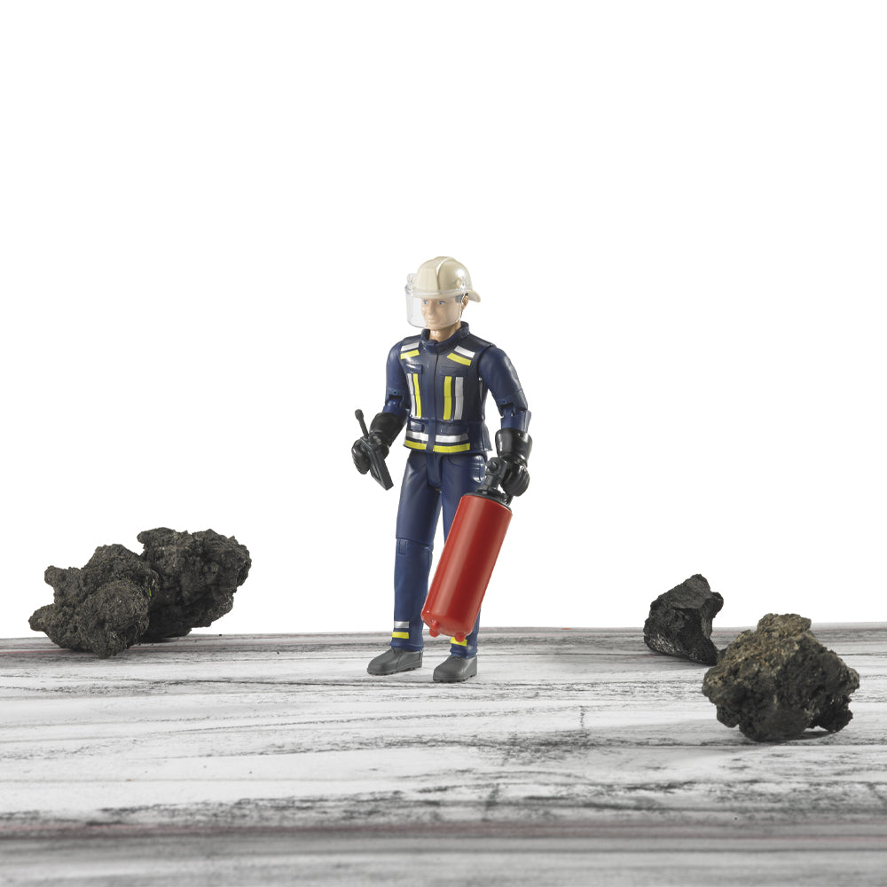 - Realistic Bruder fireman figure with full rescue equipment