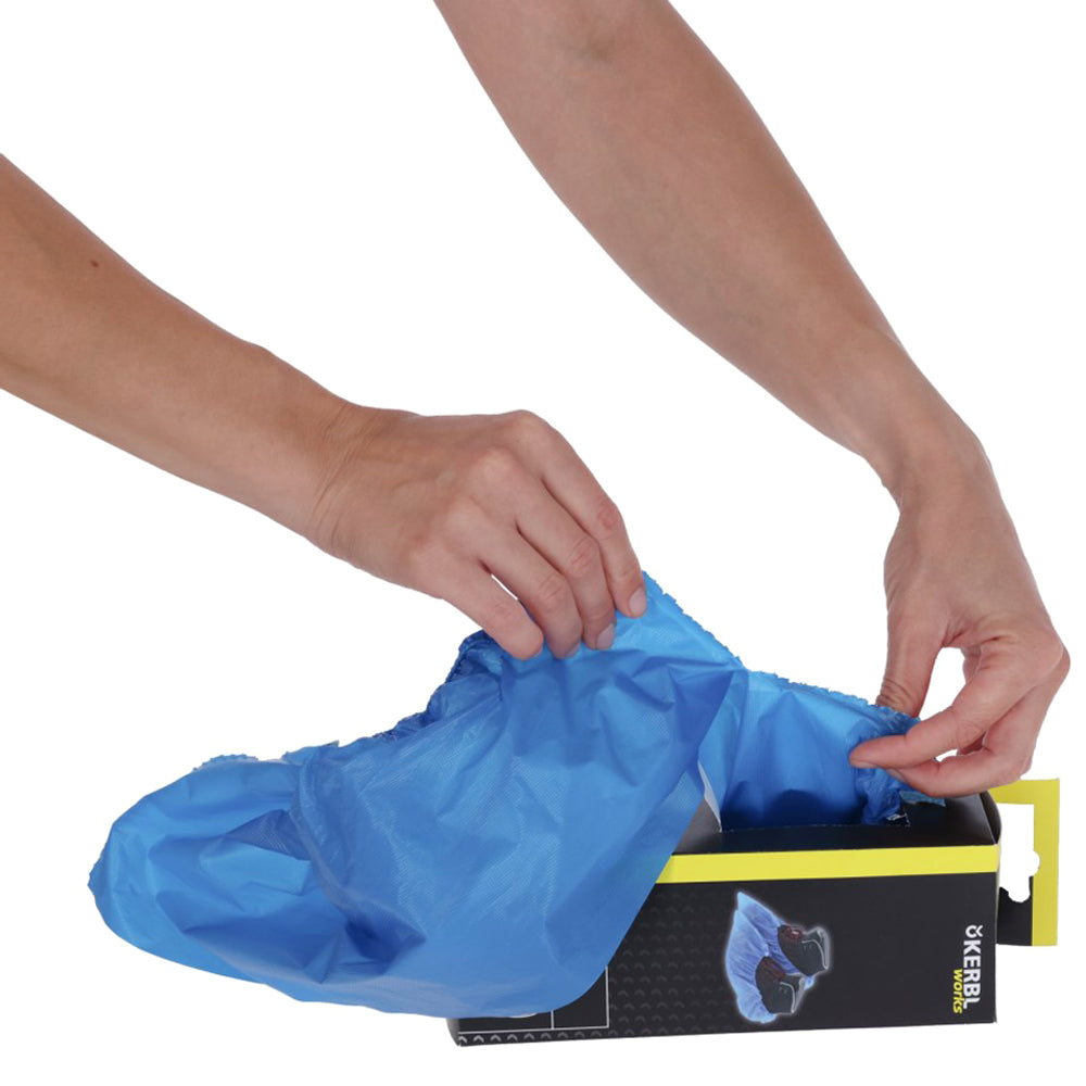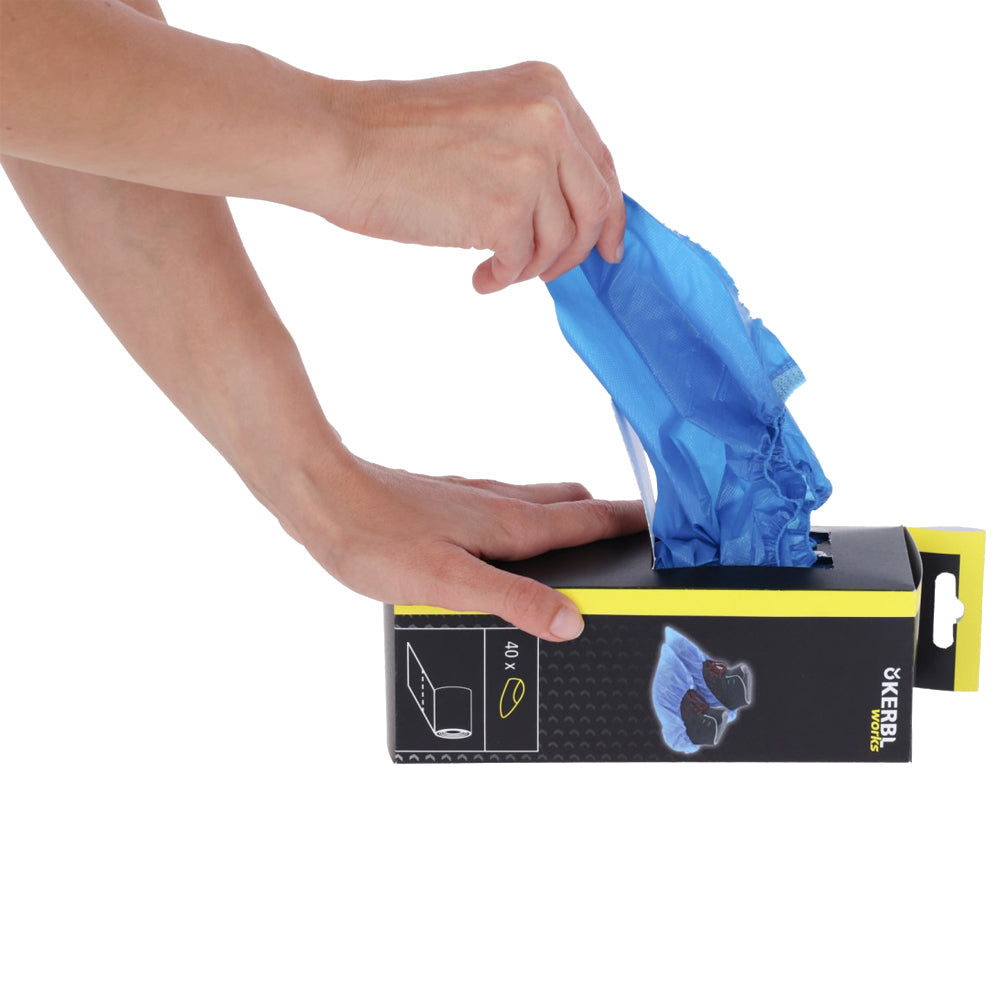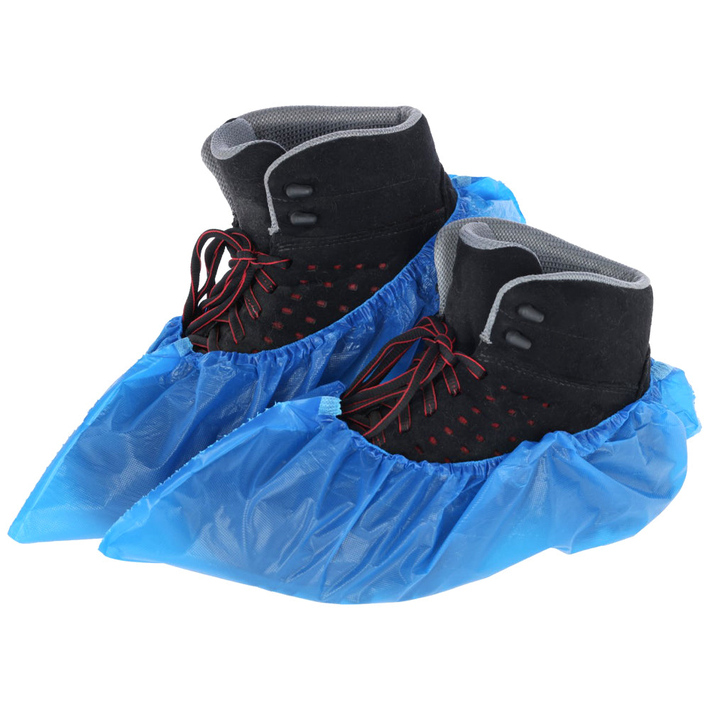 GPE disposable shoe covers provide full protection for your footwear and floors. Made from CPE (Cast Polyethylene) with a material thickness of 0.027mm, they are durable yet lightweight, ideal for both home and professional use. The ankle-high design with an elastic band ensures a secure and comfortable fit, while the material protects shoes from water and dust and keeps floors clean and free from contamination. The space-saving tear-off roll contains 40 pieces for easy dispensing without waste. Suitable for shoe sizes up to 47, the shoe covers are blue with a length of 41cm and a width of 14.5cm. Perfect for construction sites, laboratories, hospitals, or everyday use, they provide convenience, hygiene, and reliable protection in any situation.