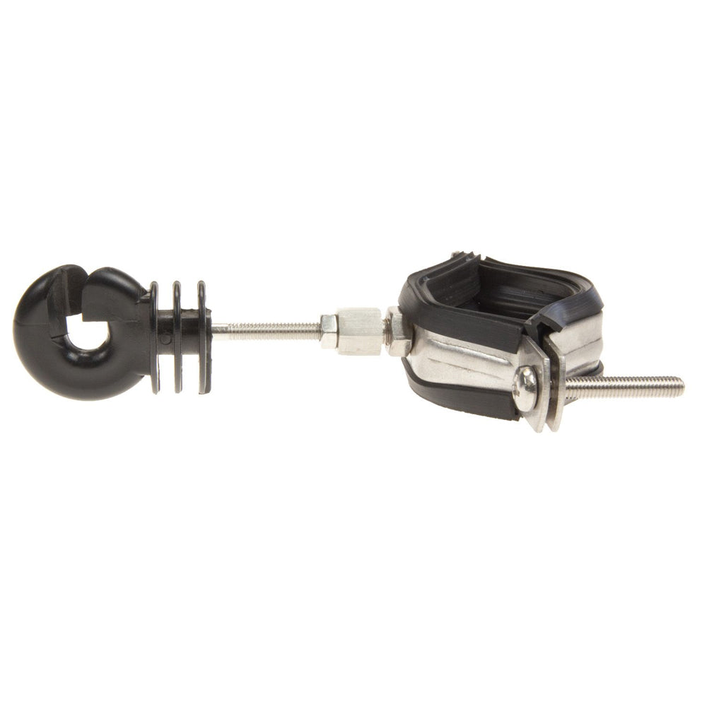 The pipe clamp for posts Ø 40–50mm with rubber lining is designed for mounting insulators with M6 or M8 threads on garden fence posts. The rubber coating ensures a secure grip without damaging the post surface. Made from durable, corrosion-resistant materials, it provides long-lasting performance and reliable stability even in outdoor conditions.