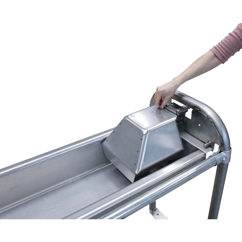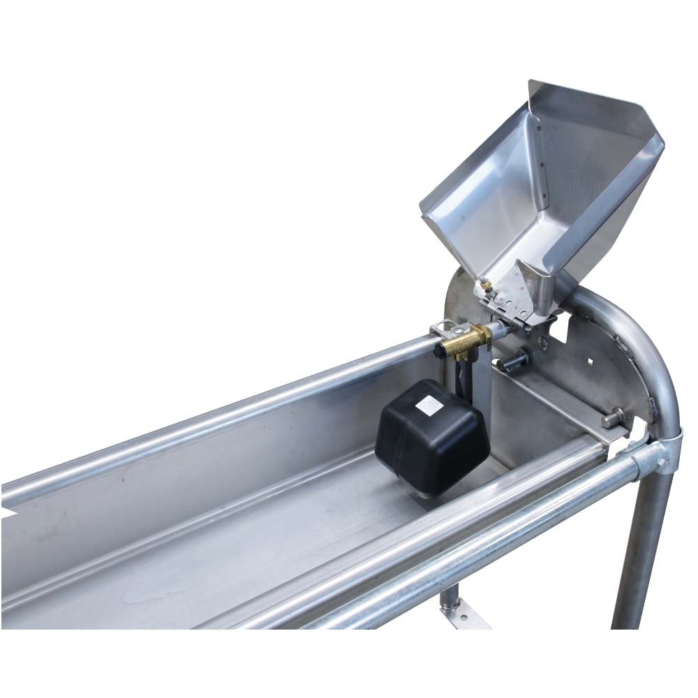 The conically slanted, rounded stainless steel trough allows extremely easy cleaning, with no sharp edges or protrusions. The flat trough design helps significantly reduce water use and manure production, saving up to 25,000 liters of water per year compared to conventional tip-over drinkers with large capacity. Installation is highly flexible, allowing water connection on either the right or left side and enabling both wall and floor mounting.