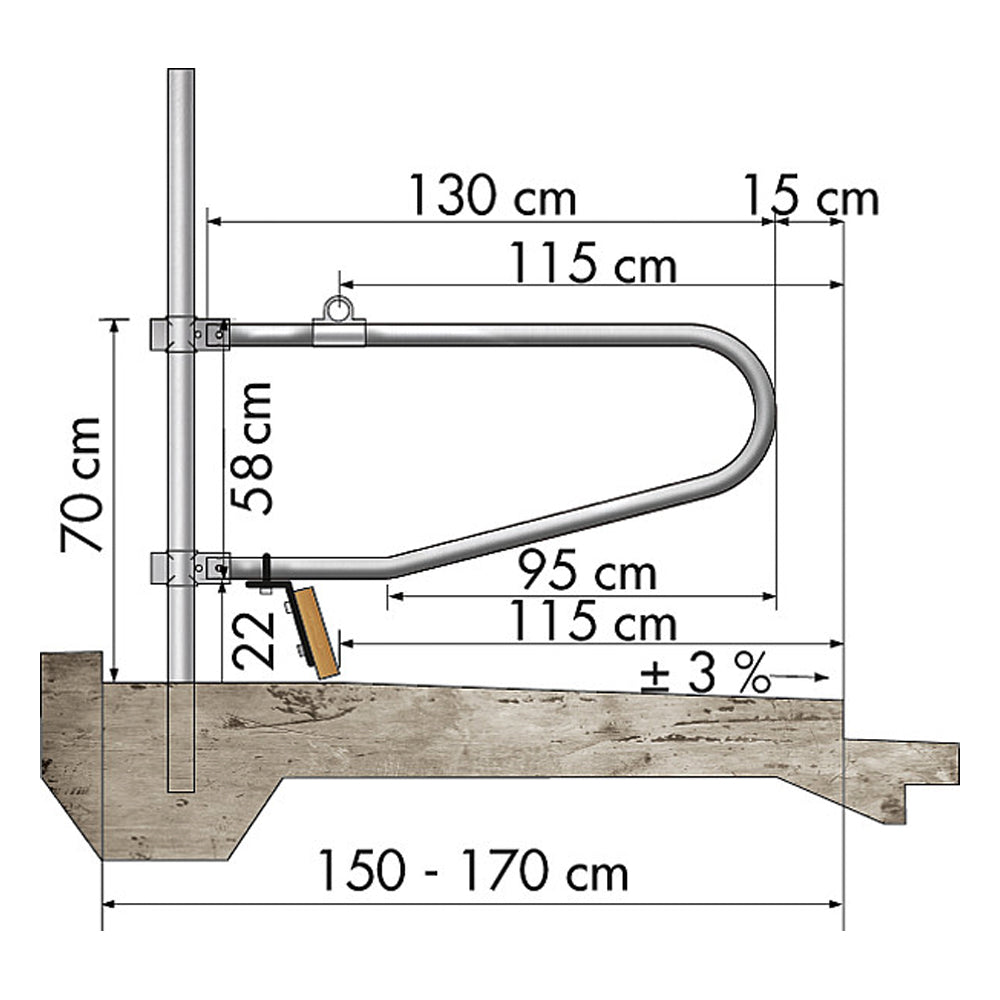 - Type: universal cubicle divider, Ø 48.3 mm, L = 1.50 m, height 70 cm