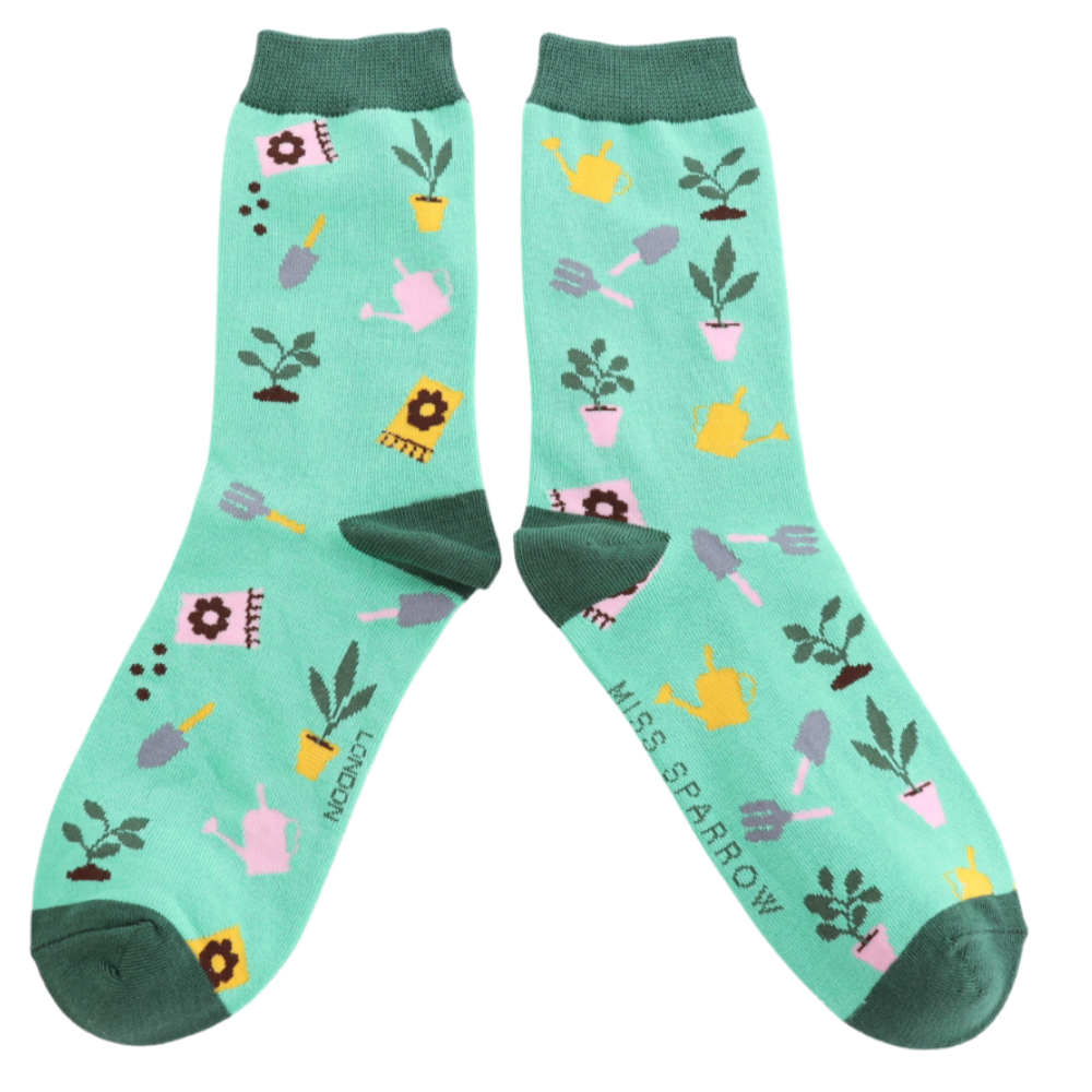 - Women’s bamboo socks by Miss Sparrow – garden motif.