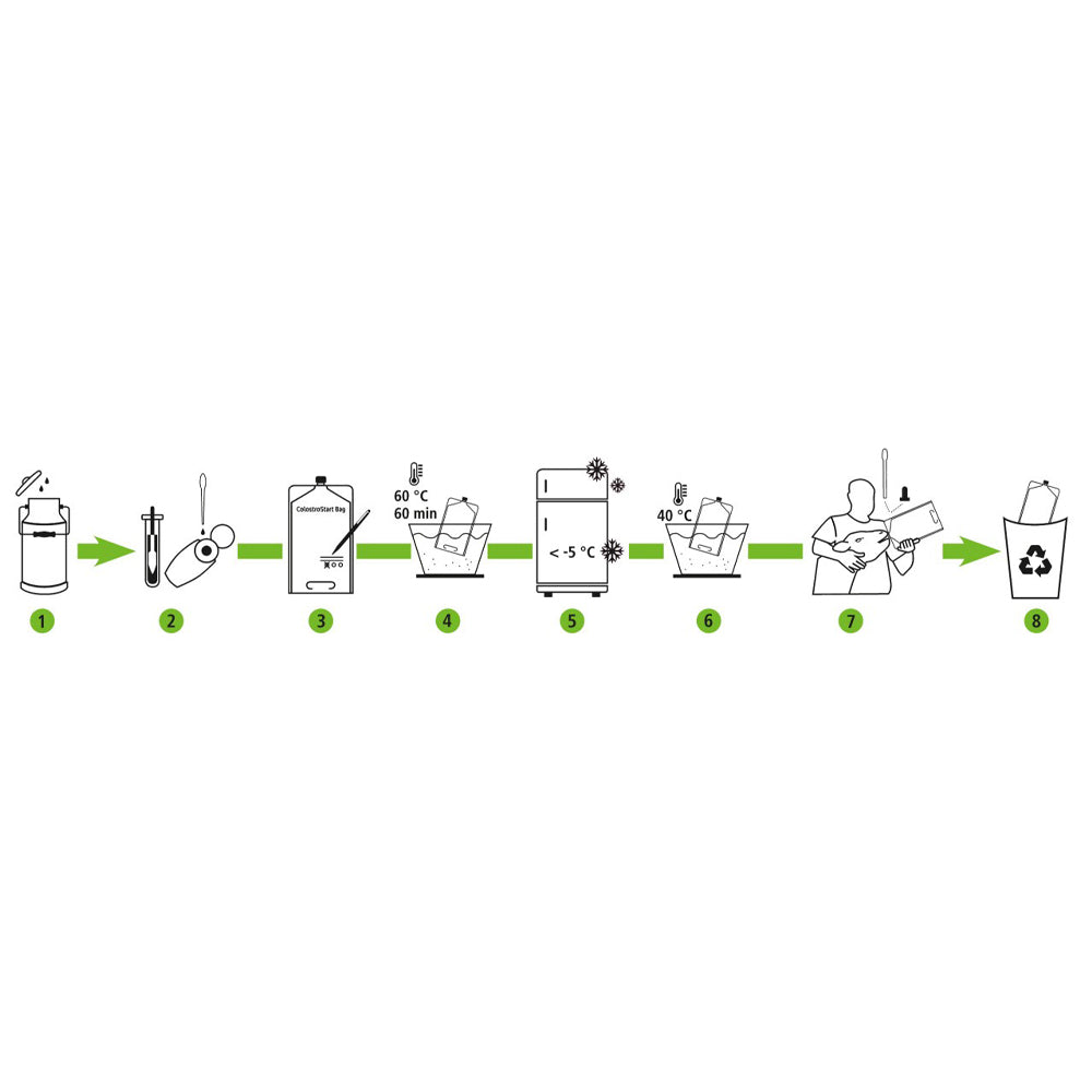 To ensure optimal feeding, it is advisable to store frozen colostrum, useful in cases of poor quality or insufficient quantity after birth. Our ColostroStart system provides 4-liter aluminum bags that are easy to fill, pasteurize, freeze, and reheat.
