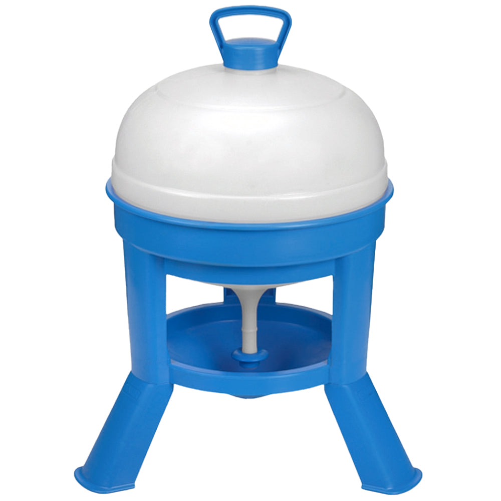 The siphon drinker is ideal for adult birds, including chickens, turkeys, pheasants, and more. Its large 20 L capacity makes it perfect for providing water to a larger number of birds. The base has a valve that controls the water flow; simply close it while filling, and open it to allow water to flow into the base.