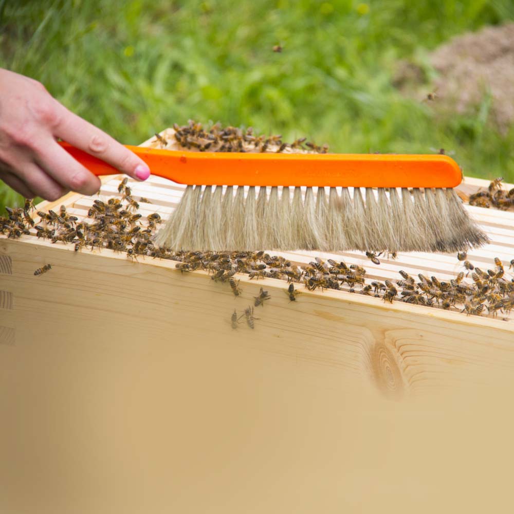 - Brush with nylon bristles for sweeping bees from the frame