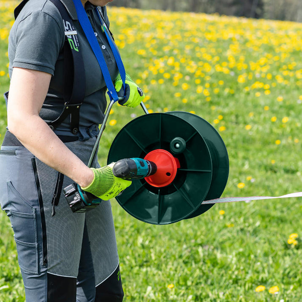 - Grazie alla sua compatibilità universale, questo avvolgitore può essere utilizzato con una vasta gamma di recinzioni elettriche e altri sistemi che necessitano di un controllo preciso dei cavi.