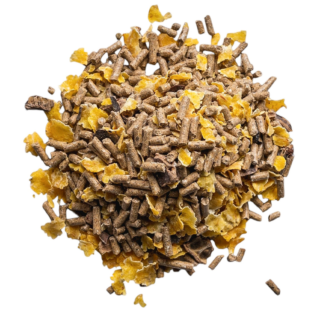 🌾 Fiocchi di Orzo e Mais – Supportano energia, forza e aumento di peso.