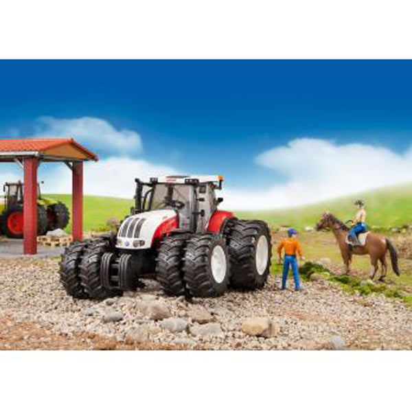Il Bruder Steyr CVT 6230 con Caricatore Frontale appartiene alla rinomata serie BRUDER Profi, progettata per offrire il massimo realismo e divertimento nel gioco agricolo. La cabina è completamente vetrata in policarbonato ed è dotata di porte apribili per un’esperienza più autentica. Il trattore dispone di un gancio di traino con meccanismo di sollevamento regolabile, compatibile con tutti gli accessori e rimorchi della serie Profi. Le gomme gemellate opzionali migliorano ulteriormente la stabilità e le prestazioni off-road, mentre gli pneumatici profilati di serie garantiscono un’ottima aderenza su qualsiasi terreno. L’asse anteriore sterzante e oscillante, controllato tramite una barra di sterzo aggiuntiva, aumenta la manovrabilità. Il peso frontale rimovibile con sistema idraulico a discesa ottimizza la distribuzione del carico. Il caricatore frontale completamente funzionante arricchisce il valore di gioco, rendendo questo modello in scala 1:16 un compagno ideale per bambini dai 3 ai 5 anni.