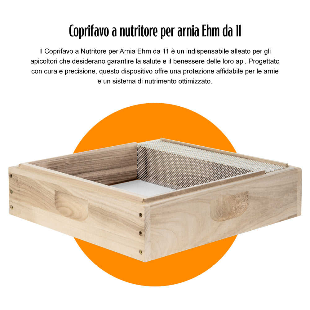 Coprifavo a nutritore in legno per arnia EHM da 11 Salita Laterale con griglia in aluminio