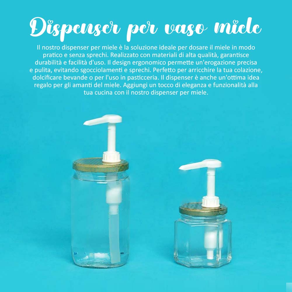 Il nostro dispenser per miele è la soluzione ideale per dosare il miele in modo pratico e senza sprechi. Realizzato con materiali di alta qualità, garantisce durabilità e facilità d'uso. Il design ergonomico permette un'erogazione precisa e pulita, evitando sgocciolamenti e sprechi. Perfetto per arricchire la tua colazione, dolcificare bevande o per l'uso in pasticceria. Il dispenser è anche un'ottima idea regalo per gli amanti del miele. Aggiungi un tocco di eleganza e funzionalità alla tua cucina con il nostro dispenser per miele.