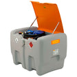The DT-Mobil Easy COMBI 440/50 l features an electric pump CENTRI SP 30, 12 V, 30 l/min, extremely quiet, with an automatic dispensing gun, a foldable lid, and dimensions (L x W x H): 118 x 80 x 85 cm.