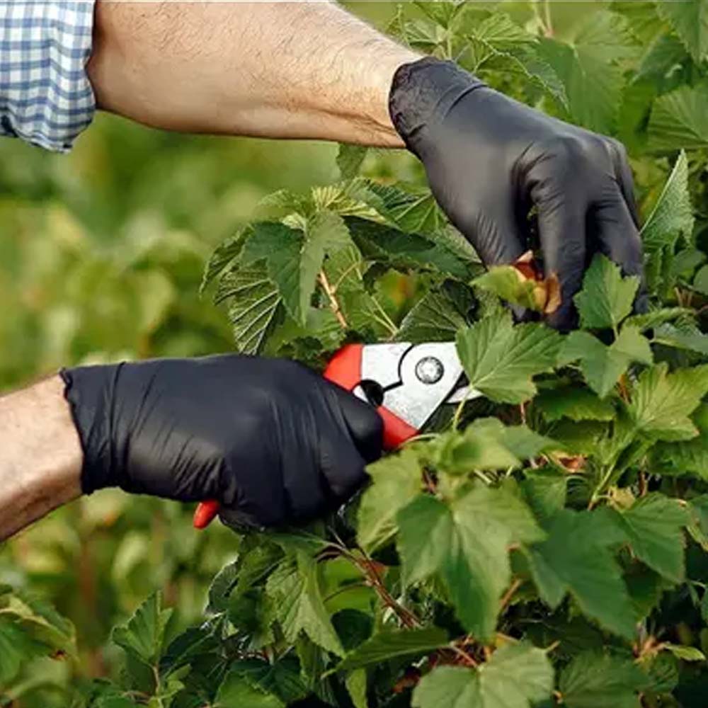 Il nitrile, materiale senza lattice, li rende adatti a chiunque abbia sensibilità o allergie al lattice. La tonalità nera non solo conferisce un tocco elegante, ma offre anche una maggiore resistenza allo sporco e alle macchie durante l'uso.