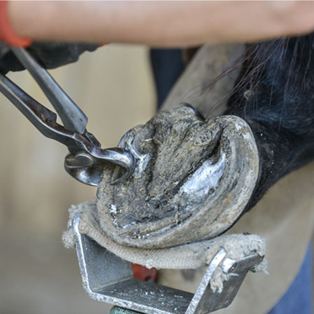 Tenaglia con moschetto laccato di nero, da utilizzare anche come tenaglia ferratura zoccolo. Realizzata in speciale acciaio per strumenti, indurito a bagno d'olio che le dona una durezza di taglio ca. 56 HRc.