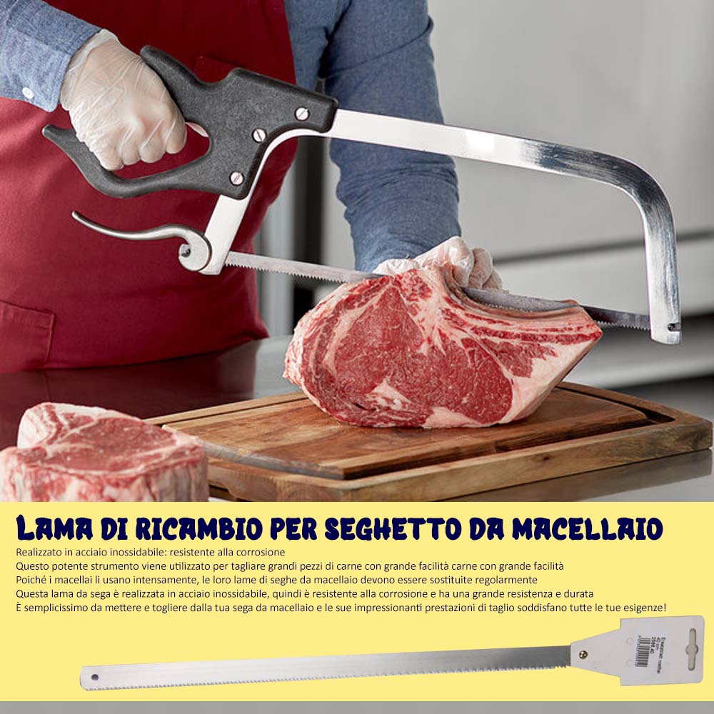 - Lama di ricambio in acciaio inox per seghetto da macellaio