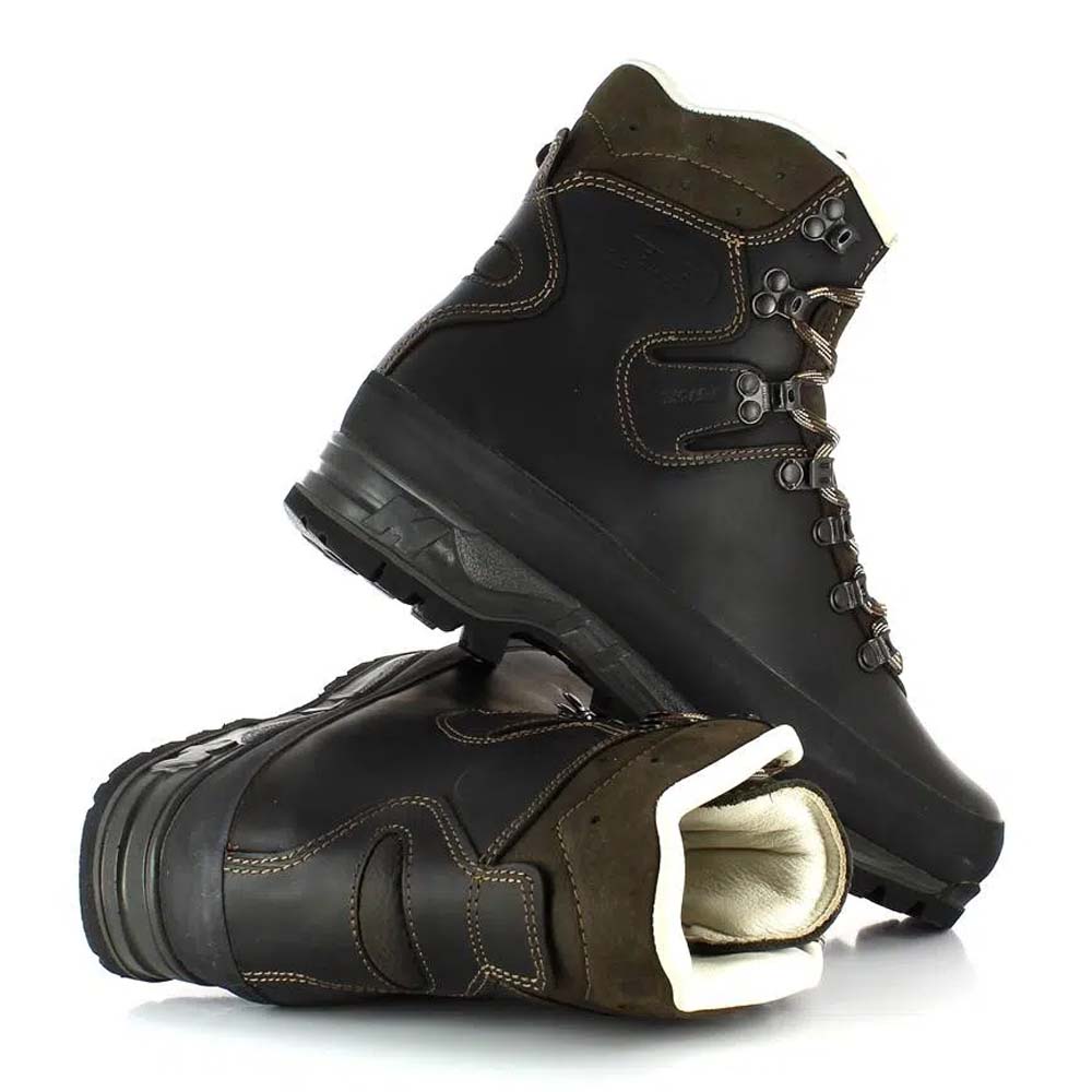 - Rifiniture di alta qualità: linguetta e bordi imbottiti, Fodera in pelle, protezione extra in gomma, suola in Vibram sostituibile, colore "Loden antico" Speciale tecnologia PU che migliora l'assorbimento degli urti lungo tutta la lunghezza dello scarpone