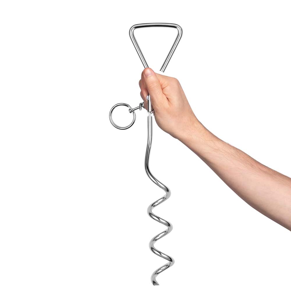 PA 6514 è un picchetto fermacane in acciaio cromato, ideale per l'esterno, indispensabile per fissare temporaneamente il guinzaglio del vostro amico. Grazie alla sua struttura a spirale, si pianta nel terreno e lascia al vostro animale la libertà di muoversi. Basta collegare il cavo di collegamento al paletto per consentire al cane di godersi la vita all'aria aperta rimanendo al sicuro. Collegare un'estremità del cavo al paletto e l'altra al collare del cane. Avvita facilmente il paletto in un terreno solido e attacca il guinzaglio del tuo cane - una soluzione ideale quando devi proteggere il tuo cane per un breve periodo di tempo. Con una lunghezza di 40,5 cm, è un oggetto ideale, ad esempio, quando andate a passeggio, in campeggio o a esposizioni canine.