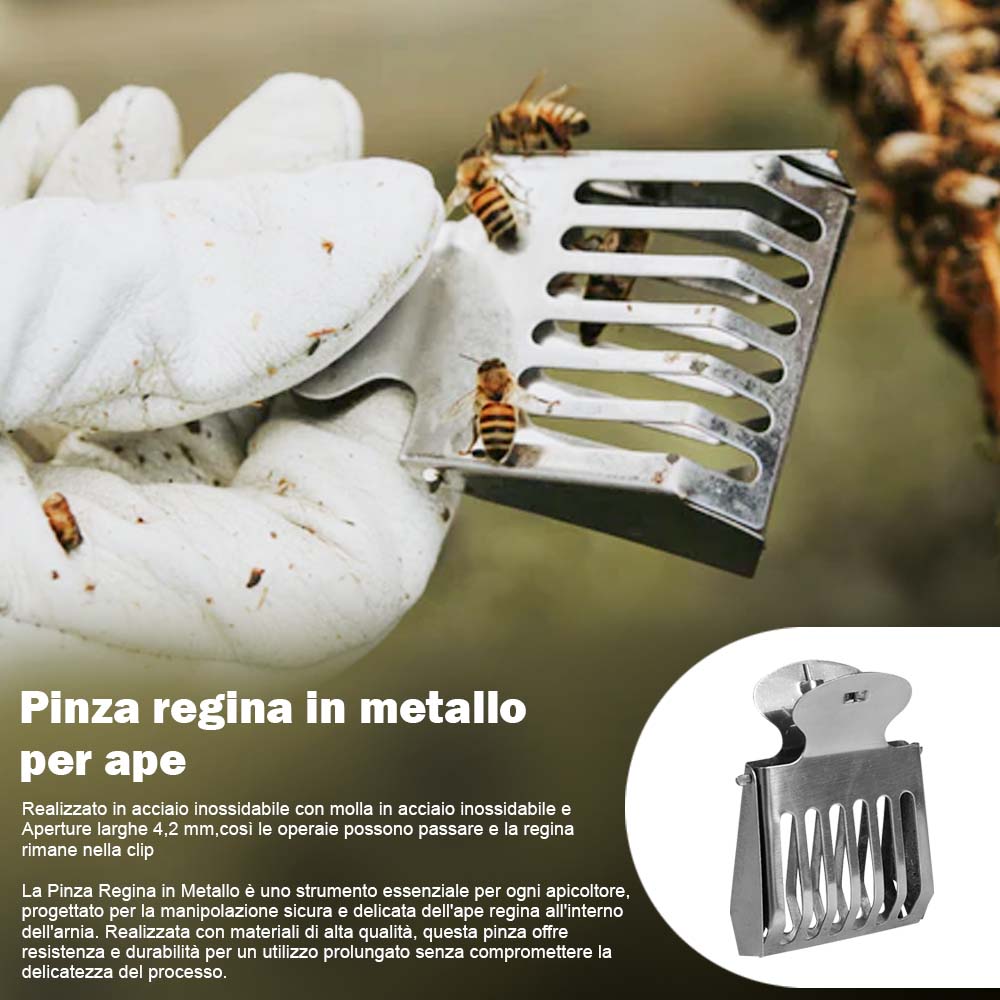 • Materiali di Alta Qualità: Costruita in metallo resistente, garantisce solidità e affidabilità per gestire con precisione l'ape regina.