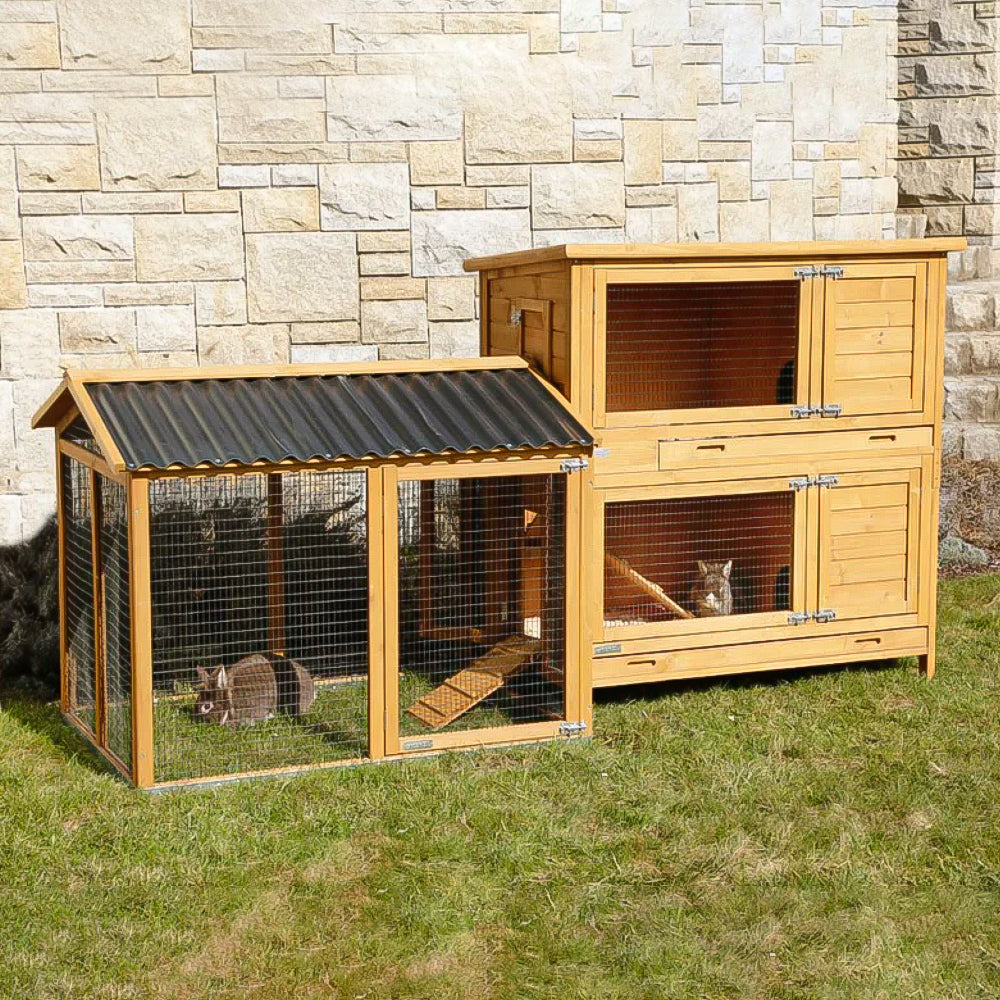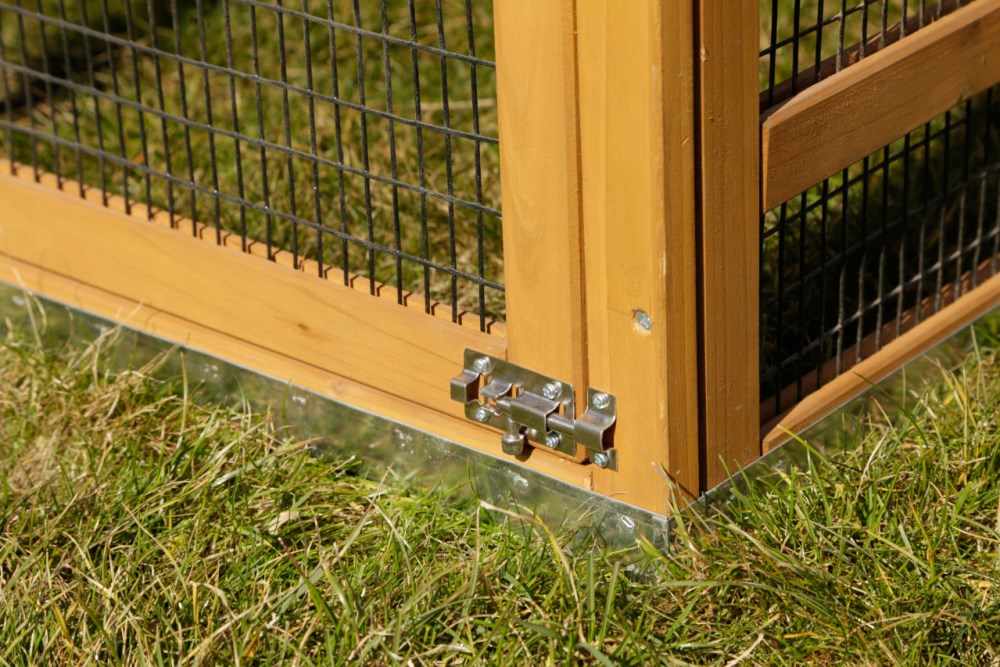 Il Recinto Mobile All'aperto Appartement Pro è la soluzione ideale per conigli e piccoli animali. Il telaio metallico sul fondo protegge dall'umidità e previene il deterioramento del legno. Una grande porta aggiuntiva facilita l’accesso, mentre la rete di alta qualità garantisce maggiore stabilità. Il tetto in plastica resistente alle intemperie assicura protezione duratura. Maggiore sicurezza grazie alla seconda serratura per la porta.