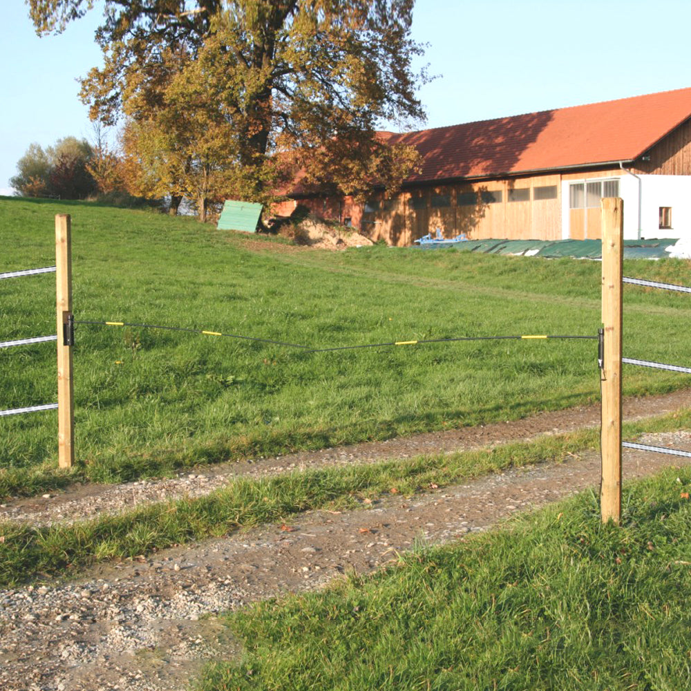 La Sbarra Elettrificata per Bestiame Electro è progettata per garantire un controllo sicuro e affidabile del bestiame all'interno di recinzioni esistenti. Realizzata con fibra di vetro flessibile e gomma conduttrice, offre un'efficace trasmissione elettrica con maniglie isolate per un utilizzo sicuro.