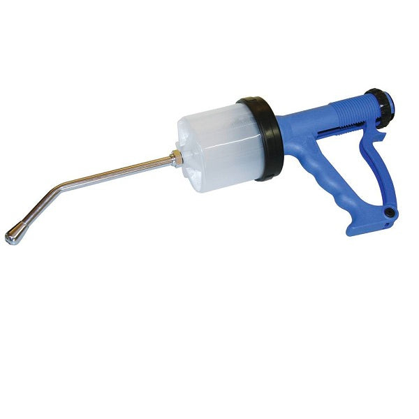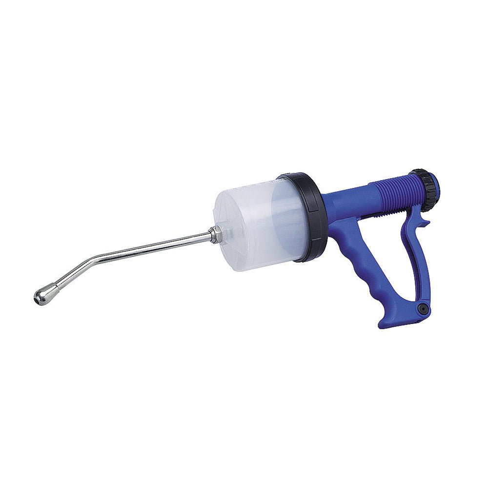 Facilmente smontabile per una pulizia accurata, è ideale per garantire un alto livello di igiene tra un'applicazione e l'altra. Il sistema di regolazione del dosaggio è continuo grazie alla pratica rotella, permettendo di adattare il trattamento alle esigenze specifiche dell'animale. Disponibile nel colore blu e in diverse capacità: 70 ml, 200 ml, 300 ml e 500 ml.
